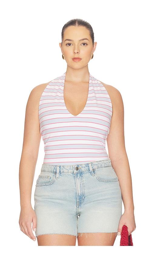 GOOD AMERICAN SUPER STRETCH HALTER TANK TOP IN BABY BLUE, PINK.