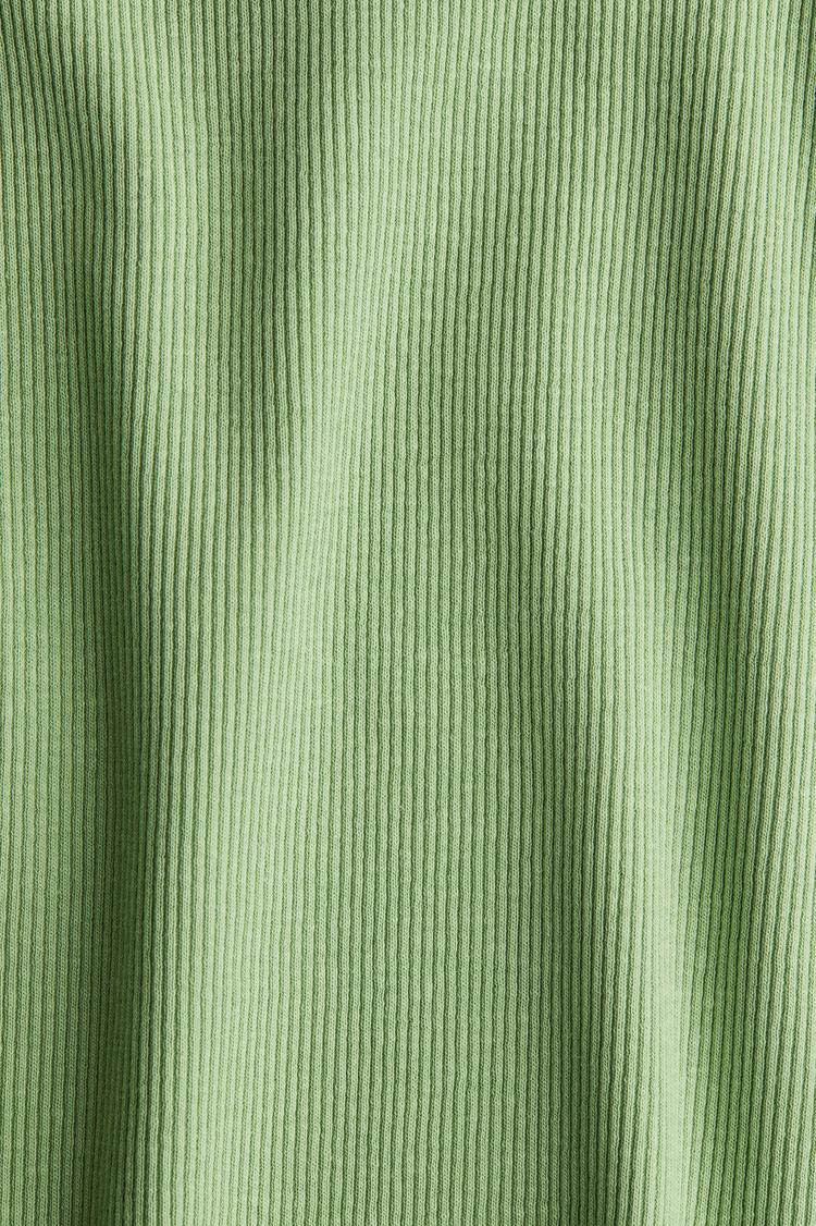 Soft rib-knit cotton in a matte light green hue shapes this cropped tank top with a sleek high neckline and wide straps. The slim fit and sleeveless design offer a flattering and breathable silhouette perfect for warm spring and summer days. This minimalist piece pairs effortlessly with high-waisted bottoms for casual outings, everyday wear, or travel adventures, delivering comfort and style in equal measure.