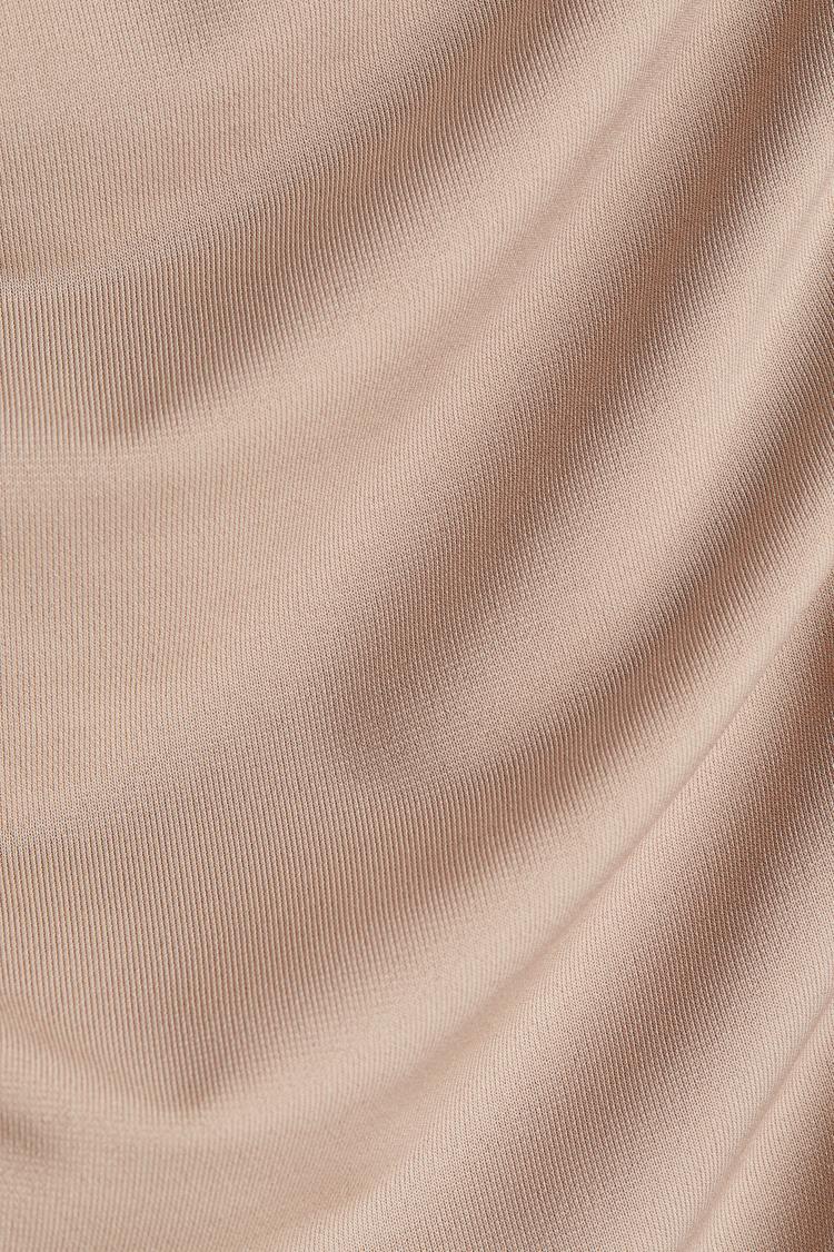 Softly draped necklines and a relaxed fit define this beige matte shell top, crafted from smooth viscose-polyester blend fabric. Its long sleeves and hip-length silhouette offer versatile styling for autumn, winter, and spring. The minimalist design paired with classic elegance makes it a refined choice for casual outings, business casual environments, or everyday workwear. Easy to layer or wear alone, this pullover top provides understated sophistication and comfort throughout the seasons.