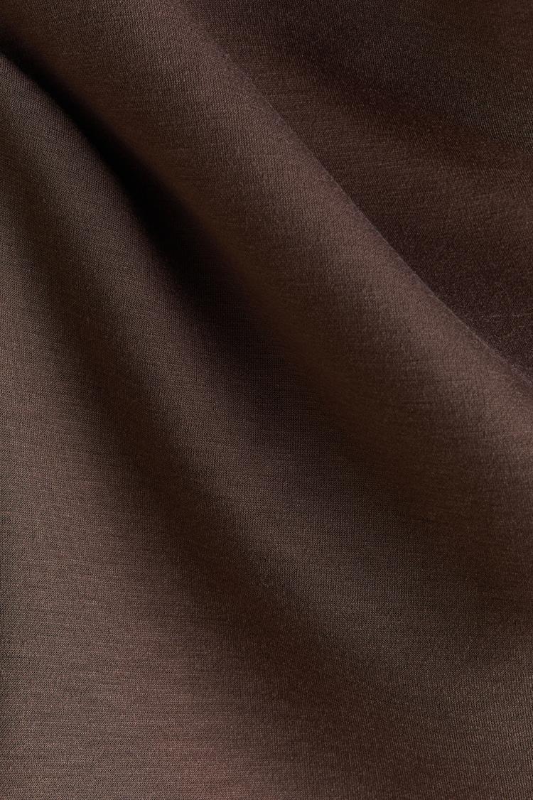 Subtle sophistication defines this asymmetric top in a matte brown hue, crafted with a soft, smooth fabric that promises comfort. Featuring a classic boat neck and long regular sleeves, its hip-length silhouette fits regularly for versatile wear. Ideal for casual days, office settings, or business casual occasions, this minimalist modern piece blends effortlessly into your seasonal wardrobe for autumn, winter, and spring. The covered back and pullover style ensure easy wearability while the understated design makes it a timeless staple for everyday elegance.