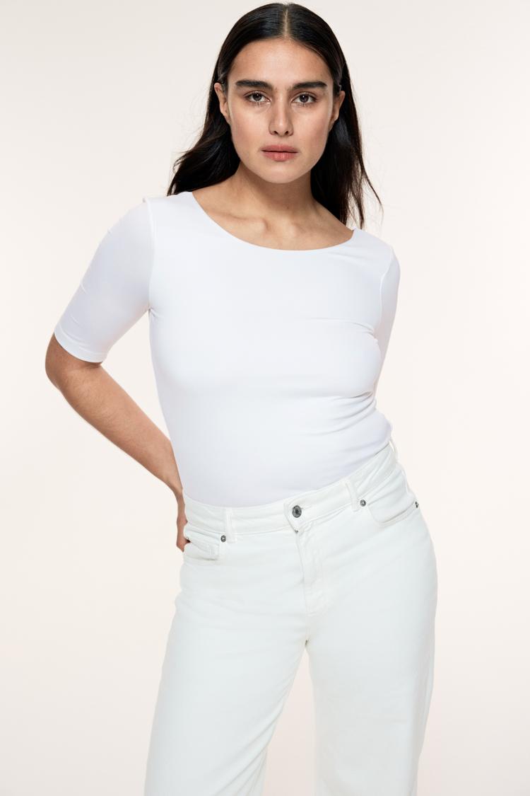 Softly fitted with a clean round neckline and half-length sleeves, this white shell top offers timeless minimalism and chic simplicity. Its waist-length silhouette and smooth fabric make it an ideal choice for casual days, everyday wear, and business casual settings. The pullover design ensures easy comfort while maintaining a polished look that pairs effortlessly with jeans or trousers.