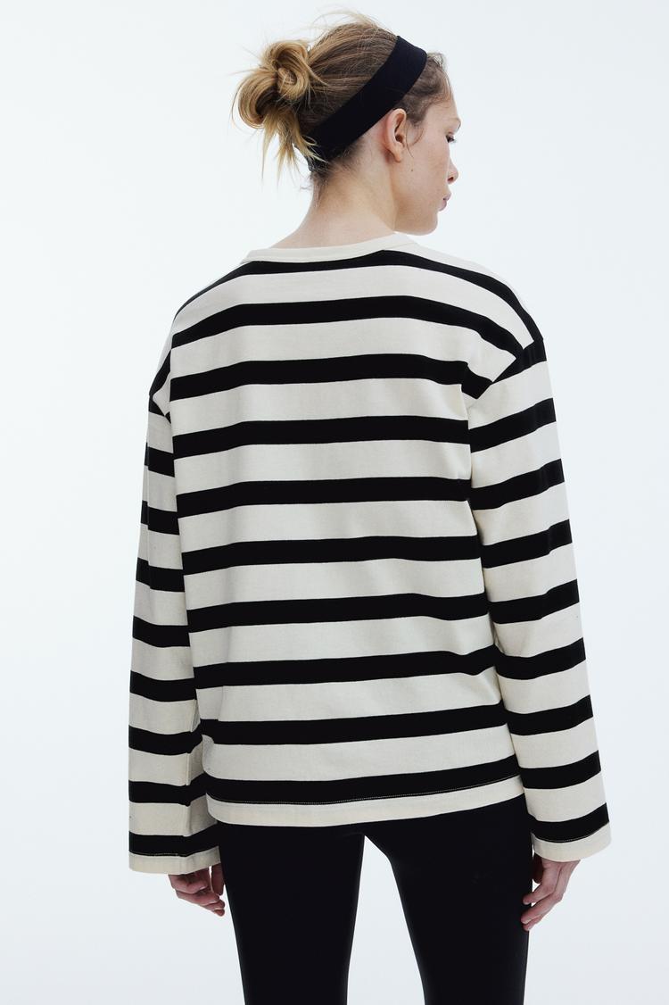 Loose-fit top in soft cotton jersey. Round, ribbed neckline, dropped shoulders, and long sleeves.