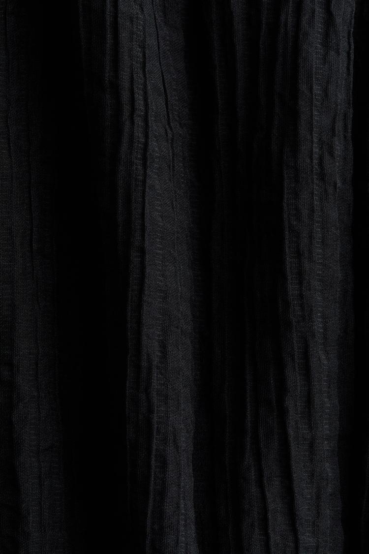 Soft matte black crinkled fabric defines this loose-fitting shell top with a strapless neckline and sleeveless styling. Its hip-length cut and minimalist design make it a versatile choice for casual everyday wear, especially in spring and summer. The pullover closure enhances the easygoing vibe, while the subtle texture adds understated interest. Perfect for relaxed brunches, casual outings, or warm-weather strolls, this top combines comfort with a chic, effortless silhouette.