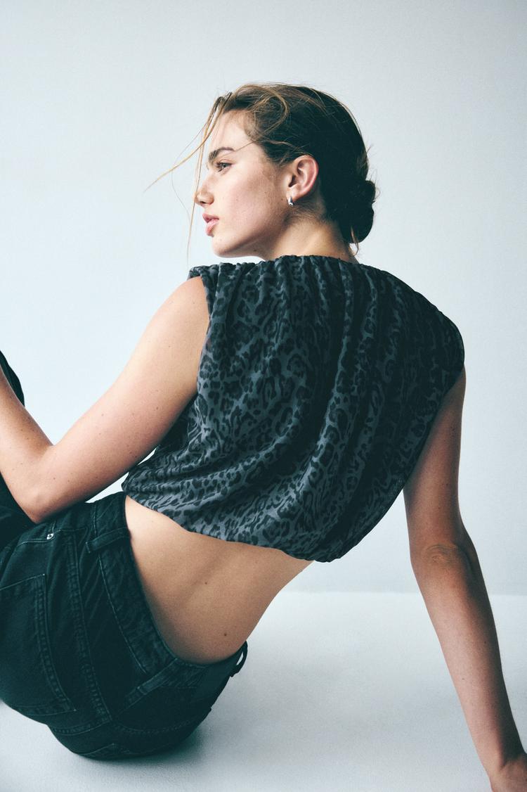 Soft drape and subtle animal print define this cropped mesh shell top, offering a loose fit that is both airy and stylish. Featuring a sleeveless cut with a straight neckline, it presents a modern, edgy vibe perfect for warmer seasons. The pullover design and covered back enhance its effortless appeal. Ideal for casual outings, girls' nights, or late evening events, this versatile piece combines breathable mesh fabric with trendy draping details for a standout look that balances comfort and fashion-forward attitude.