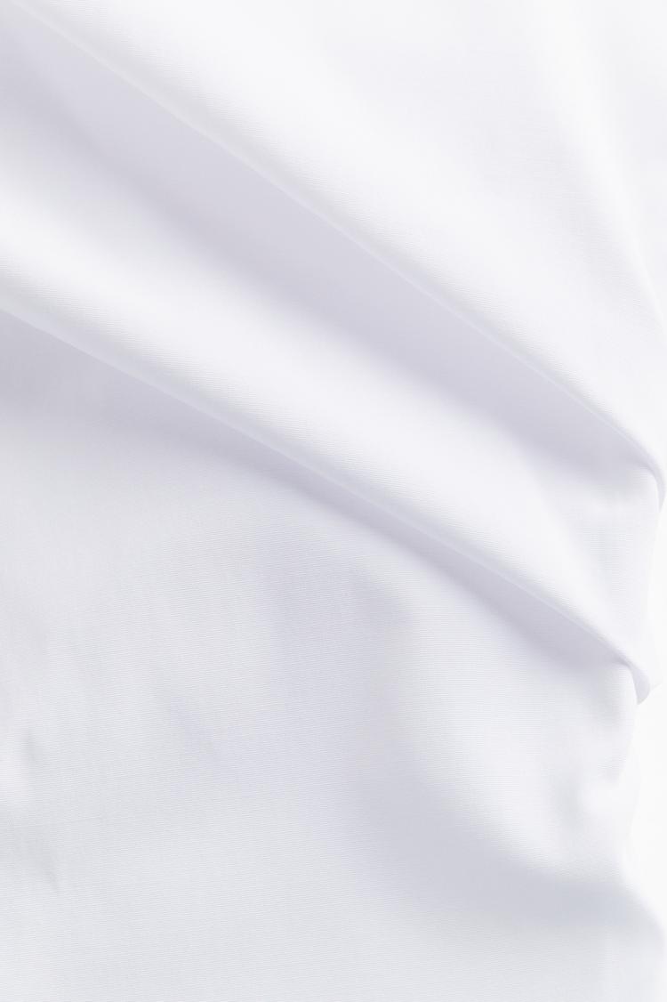 Crisp woven cotton and polyester blend shapes this draped one-shoulder top with an asymmetric neckline and sleeveless silhouette. The fitted cropped length flatters your figure while pleated details at the shoulder and side add elegant texture and movement. Concealed side zipper ensures a seamless finish. Ideal for warm spring and summer days, this chic modern piece transitions effortlessly from casual outings to sophisticated night outs and date nights.