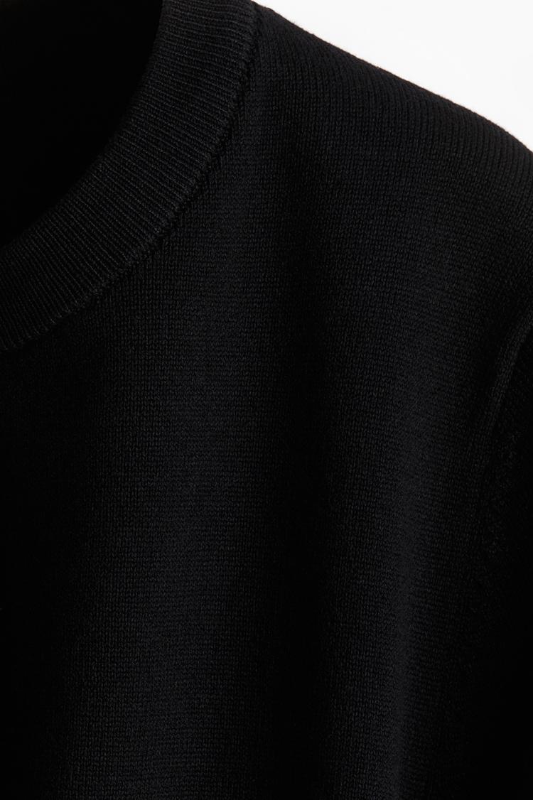 Effortless polish meets everyday ease in this Fine-Knit Top. Crafted in a soft viscose-cotton blend, this black knit drapes with a refined, breathable hand. Ribbing at the crew neckline, cuffs, and hem adds structure to a simple silhouette. The Regular fit hugs the body without restricting, and the waist-length hem makes it a versatile base layer or standalone top. A true wardrobe staple: pair with tailored trousers for work, or denim for weekends. Lightweight yet polished, this pullover top transitions from casual to smart-casual with ease, ideal for transitional seasons and layered looks.