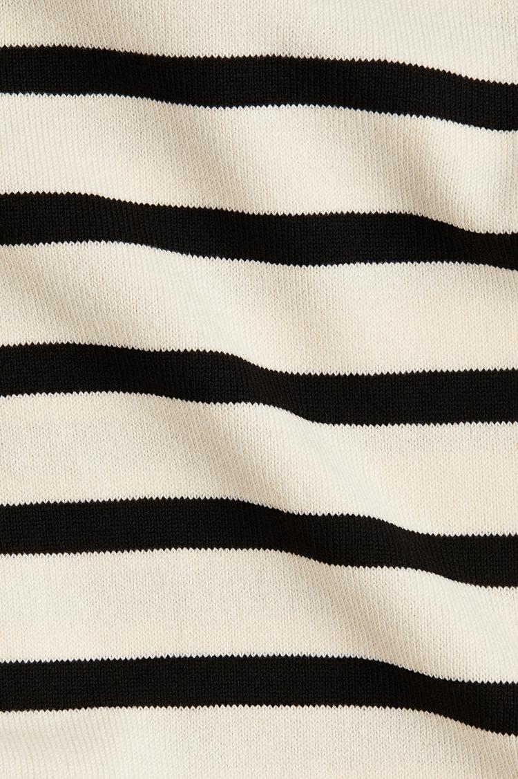 Classic cream and black stripes define this fine-knit shell top, featuring a comfortable regular fit with half sleeves and a timeless round neckline. The hip-length silhouette and regular sleeve styling make it a versatile piece for casual outings, everyday wear, or relaxed brunches. The minimalist pattern enhances its casual chic vibe, while the pullover design ensures easy wearability. Crafted in a fine-knit texture, this top offers subtle sophistication for warmer seasons like spring and summer.