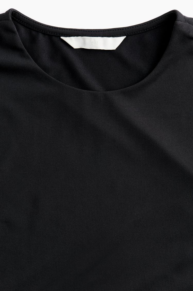 A sleek fitted jersey top crafted from soft cotton offers comfort and style with its classic round neckline and long sleeves. The solid matte black hue and hip-length cut make it a versatile staple ideal for casual outings, workwear, and everyday layering. Its minimalist design and pullover closure emphasize ease and understated elegance, perfect for pairing with a variety of bottoms across seasons.