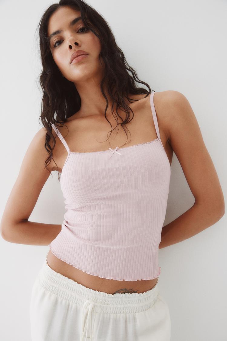 LACE-TRIMMED STRAPPY TOP