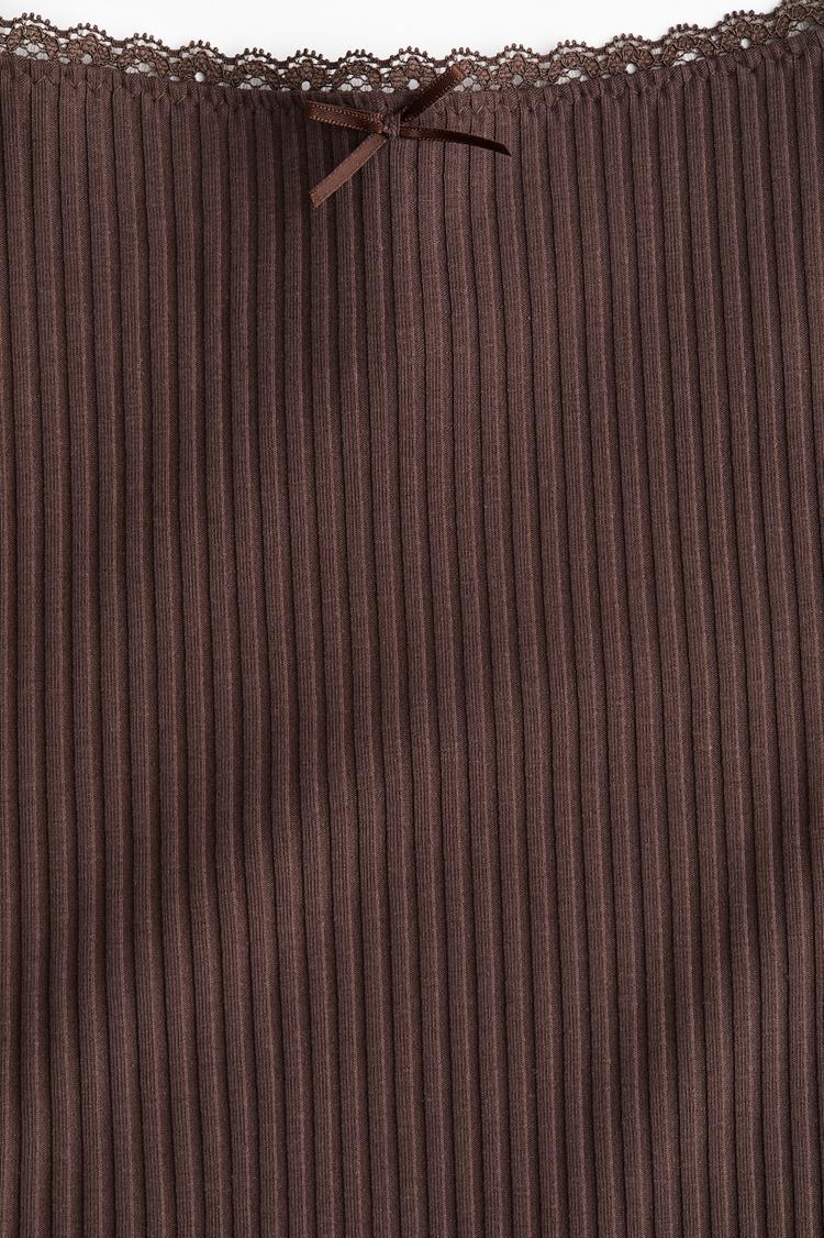 Soft ribbed fabric and delicate lace trim combine to create this elegant camisole top with a slim fit and square neckline. Featuring slender spaghetti straps and a subtle bow detail at the front border, this waist-length piece offers a minimalist yet chic silhouette perfect for casual outings, brunch dates, and everyday wear during spring and summer. The rich brown shade adds warmth and versatility to your wardrobe, making it an essential layering or standalone top for effortless style.