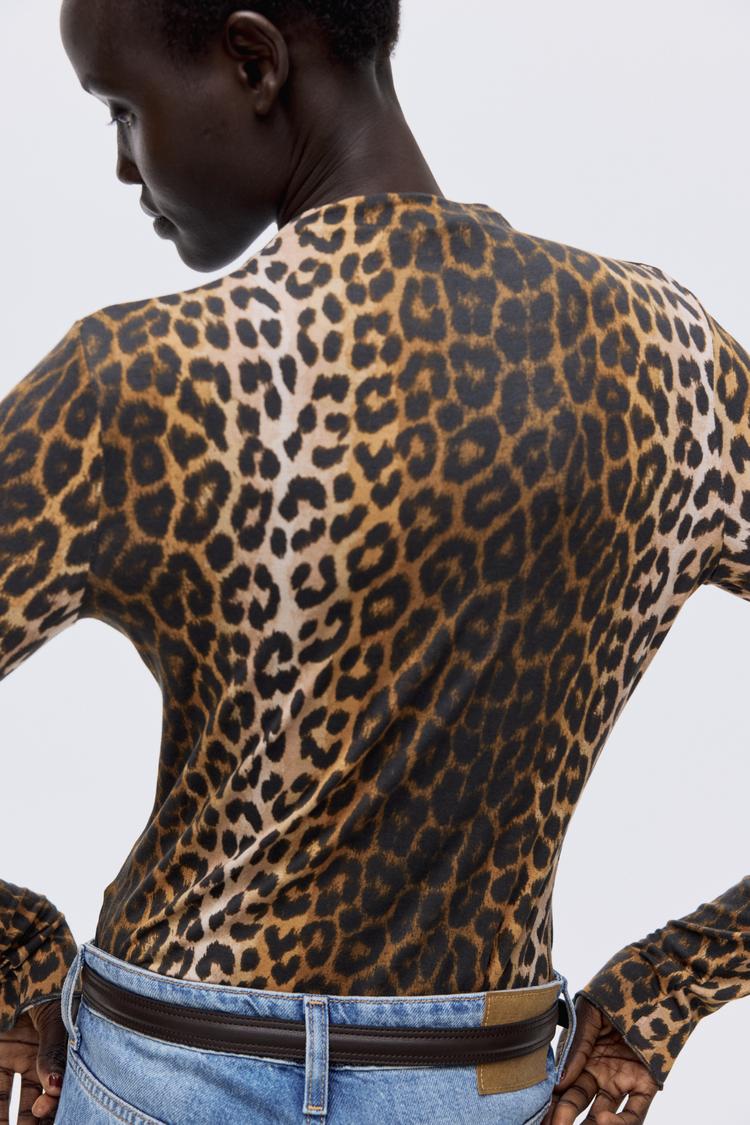 A sleek mock turtleneck with a bold all-over animal print makes a striking statement for casual and street style looks. Its slim fit and long sleeves offer a flattering silhouette that layers easily under jackets or pairs effortlessly with denim for everyday wear. Perfect for autumn, winter, and spring, this hip-length shell top channels a trendy, chic vibe while providing warmth and style for city strolls, casual outings, or relaxed gatherings.