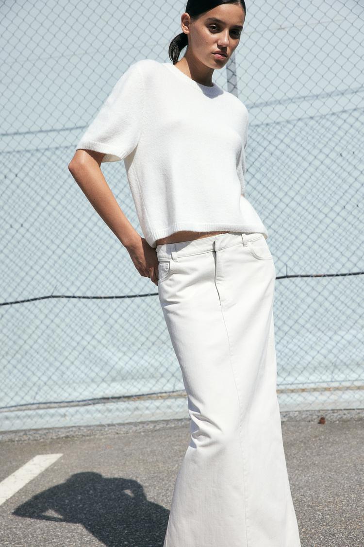 Effortless everyday luxury meets timeless minimalism in this Short-Sleeved Fine-Knit Top. Crafted from soft cotton, this crisp white knit features a classic round neckline with subtle ribbing at the neck, cuffs, and hem, delivering quiet texture and a polished silhouette. The relaxed, cropped fit creates a versatile shell that pairs perfectly with high-waisted denim, a midi skirt, or tailored pants. Wear solo for a clean, modern look or layer under a blazer for workwear polish. A wardrobe staple that elevates any casual or refined outfit with effortless ease.
