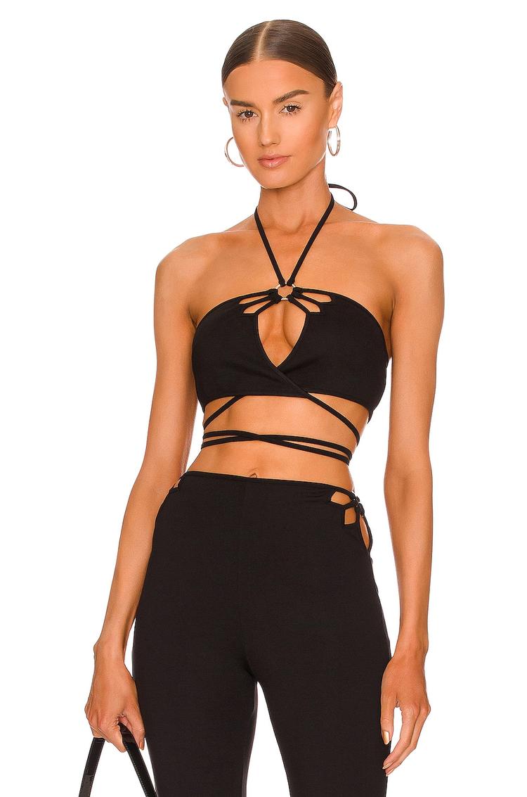 Effortless heat meets modern edge in this Olivia Crop Top by H:Ours. A halter neckline ties high, while a dramatic front cut-out framed by slender wrap straps adds a flirty, architectural twist. Crafted in a thick jersey blend (60% rayon, 35% nylon, 5% spandex) for a smooth, body-skimming fit that’s stretchy and flattering. The back ties secure the silhouette for a clean, back-baring line, while the cropped hem pairs perfectly with high-waisted bottoms. Versatile enough for a night out, a beach party, or a tropical vacation—dress it up with statement earrings or keep it sleek with minimalist bottoms. A bold, confident essential.
