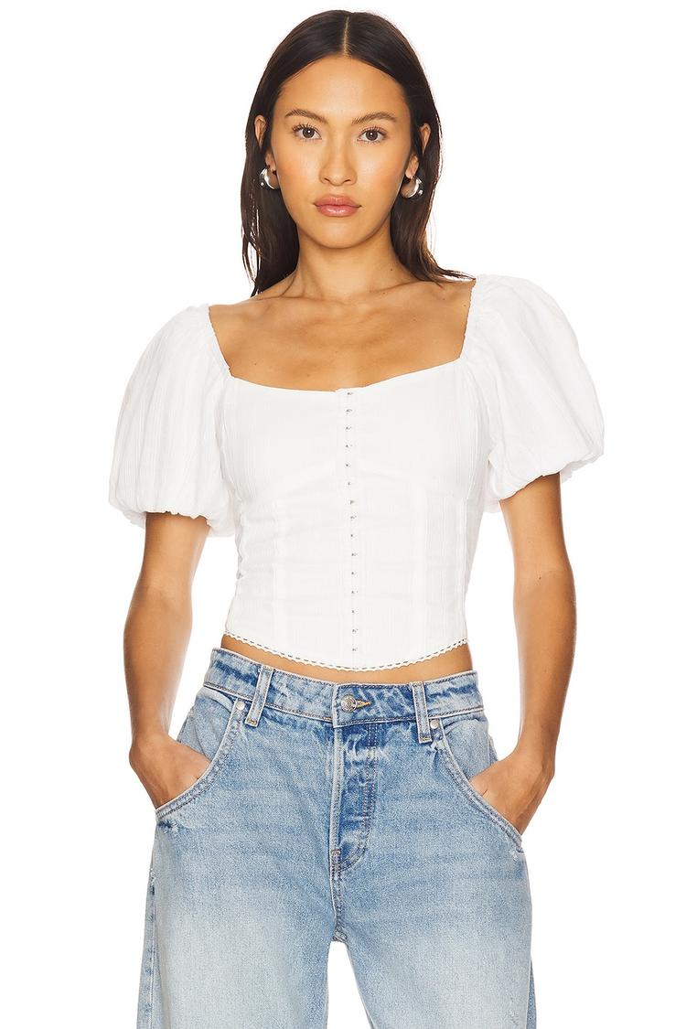 Embrace airy, feminine ease with this white cotton top. The Arisa Top features a square neckline, puff sleeves, and a delicate lace trim that frames the bodice. Its cropped silhouette sits neatly on high-waist denim, while a front hook-and-eye closure adds retro charm. The smocked back delivers comfort and a flexible fit, finished in breathable cotton for all-day wear. Dress it up with tailored pants or keep it casual with jeans for weekends away. Romantic, versatile, and effortlessly chic, this top is a spring-summer staple that elevates any look.