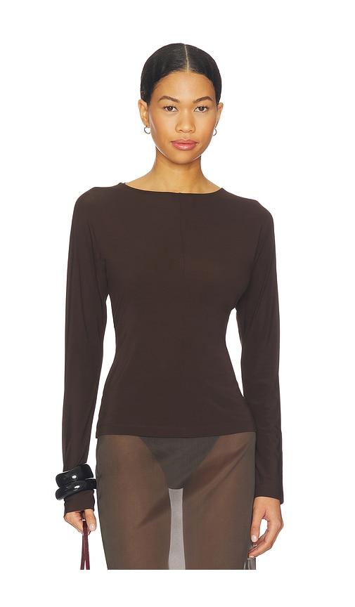 HELMUT LANG COWL BACK LONG SLEEVE TOP IN BROWN.