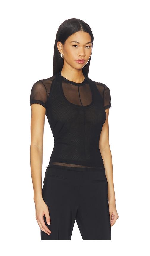 HELMUT LANG MESH LAYERED TOP IN BLACK.