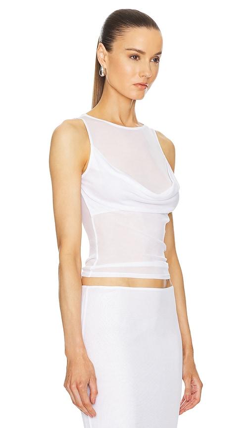 HELSA SHEER KNIT DRAPED TOP IN WHITE.
