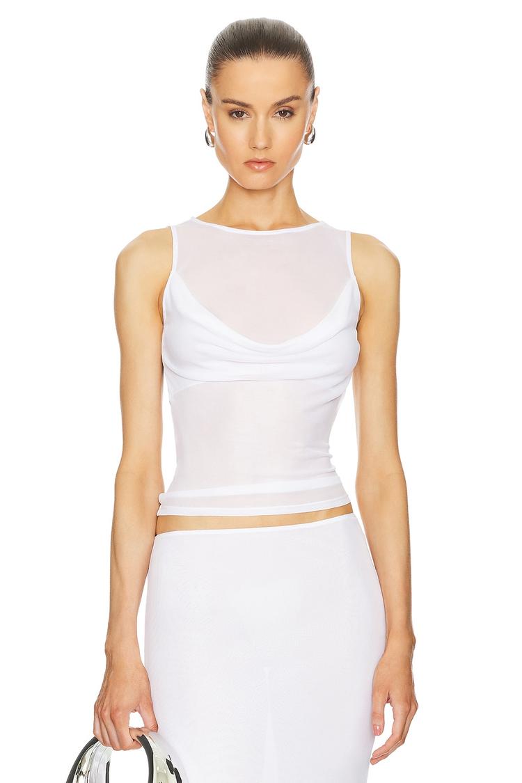 Effortless sophistication meets a delicate, translucent touch with this Sheer Knit Draped Top. Crafted from 100% viscose, the sleeveless design features a lined upper for modesty while a sheer mesh layer adds ethereal texture. A draped cowl neck creates a soft, flattering neckline, and a cropped silhouette keeps the line modern and sleek. The back offers a clean, open finish that pairs beautifully with high-waisted skirts or tailored pants. Perfect for layering under a blazer for workwear polish or styled for a chic evening look. Dry clean only for lasting elegance.