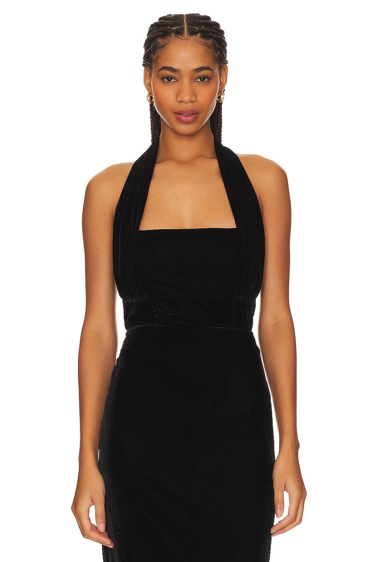 Sleek and sophisticated, this fitted halter camisole crafted from plush velvet fabric features a built-in boned bodice that enhances silhouette and provides structure. The matte black finish and sleeveless, strapless styling with a halter neckline create a striking look perfect for night out, cocktail parties, and date nights. Hidden hook and eye closure along with an invisible back zipper ensure a seamless fit. This waist-length top exudes elegant and sexy vibes, making it an essential piece for your chic evening wardrobe.