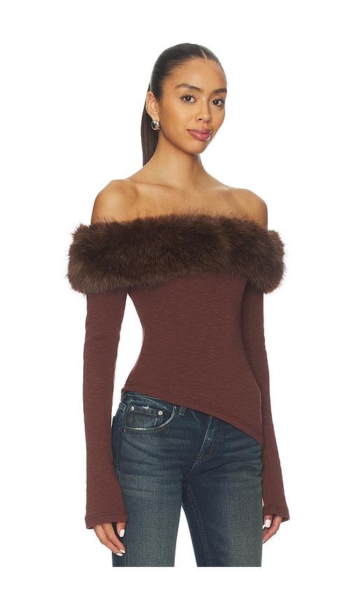 I.AM.GIA OFF SHOULDER TOP IN BROWN.