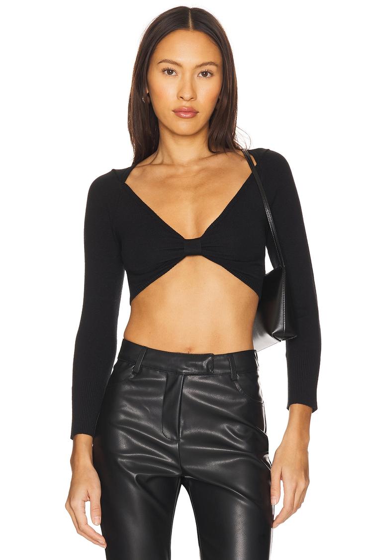 A sleek, ribbed trim wrap top with a deep V-neckline and a cropped silhouette, crafted from a midweight knit blend of viscose, polyester, nylon, and acrylic. Its slim fit and long sleeves make it perfect for cooler seasons like autumn and winter, while the edgy black hue complements street style and night out looks alike. The center wrapped accent enhances the modern, trendy vibe, making it a versatile choice for casual days, girls' nights, or urban outings.