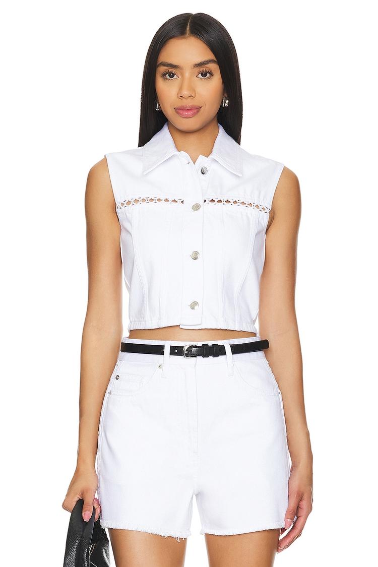 Elevate everyday summer with this Rebaka Top by IRO. Crafted in crisp 100% cotton, the sleeveless cropped silhouette features a classic collared button-down and a playful cutout with a delicate tie-up detail across the chest. A tailored, fitted shape keeps the look polished, perfect for pairing with high-rise denim shorts, a sleek mini skirt, or tailored trousers. The breathable cotton fabric keeps you cool, while the front button closure and clean lines lend modern sophistication. Dress it up for a brunch or date night, or keep it laid-back with minimal accessories—this top brings instant chic to any warm-weather moment.
