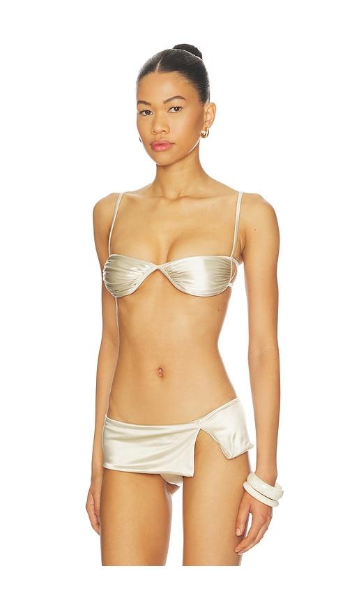 ISA BOULDER FAWNING BIKINI TOP IN METALLIC NEUTRAL.