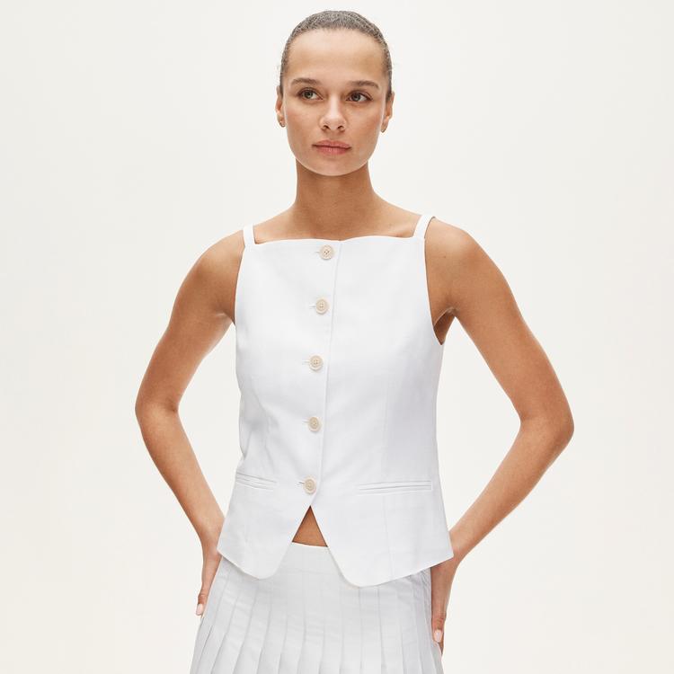 BUTTON-UP CUTAWAY TANK TOP IN STRIPED GRAMERCY LINEN BLEND