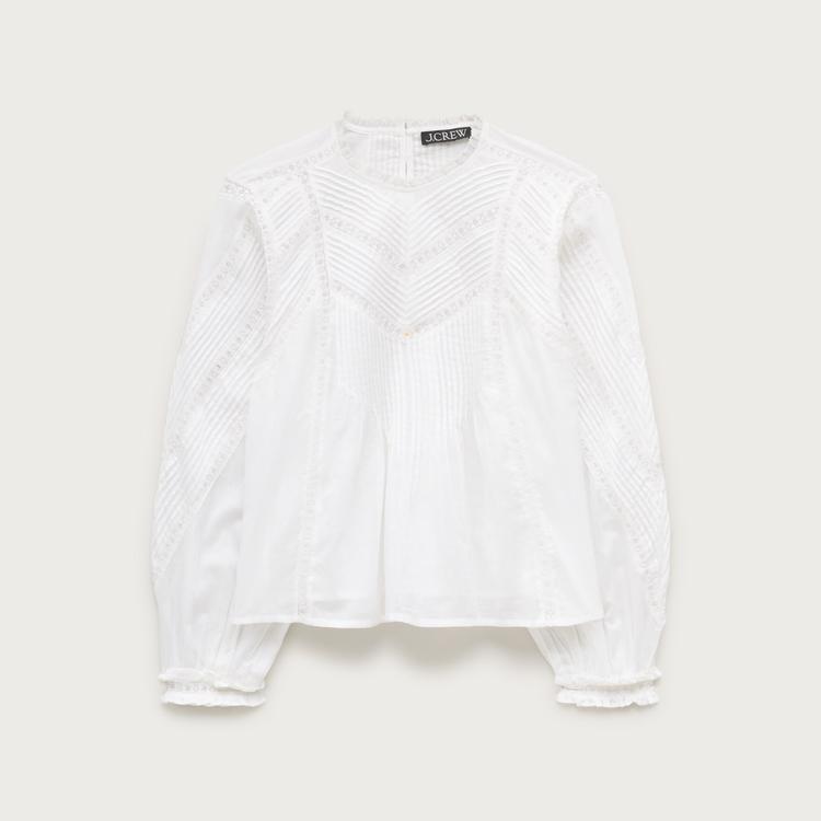 LACE-TRIM PINTUCK TOP IN COTTON VOILE