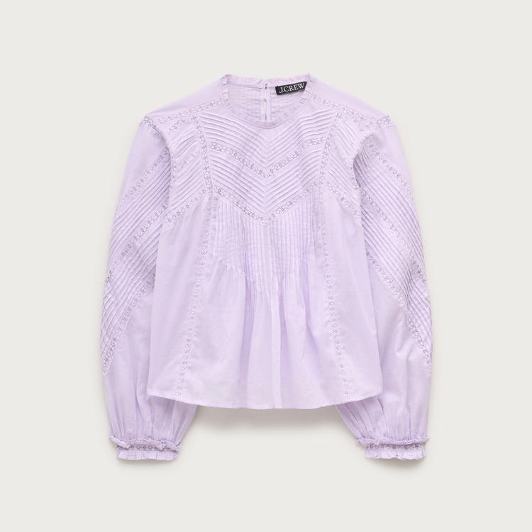LACE-TRIM PINTUCK TOP IN COTTON VOILE