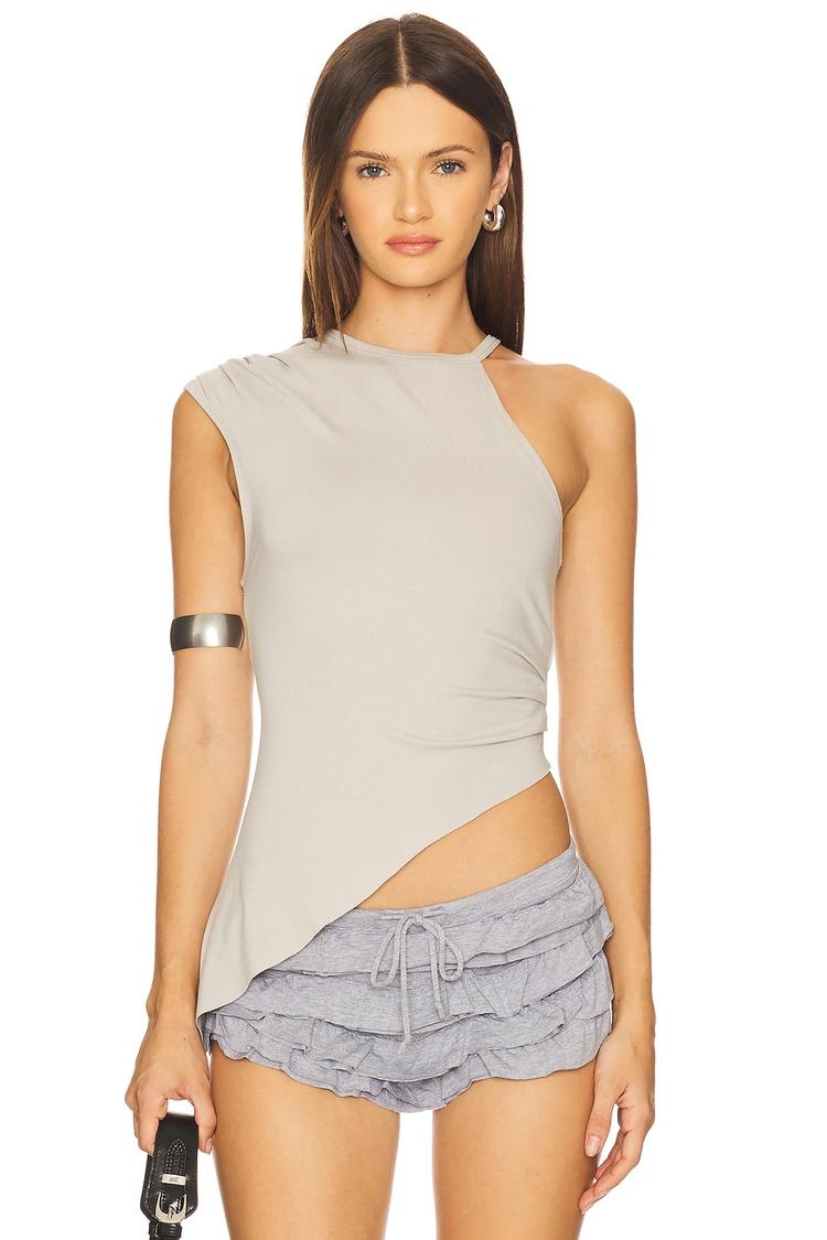 Lightweight jersey fabric with asymmetrical hem and ruched side
