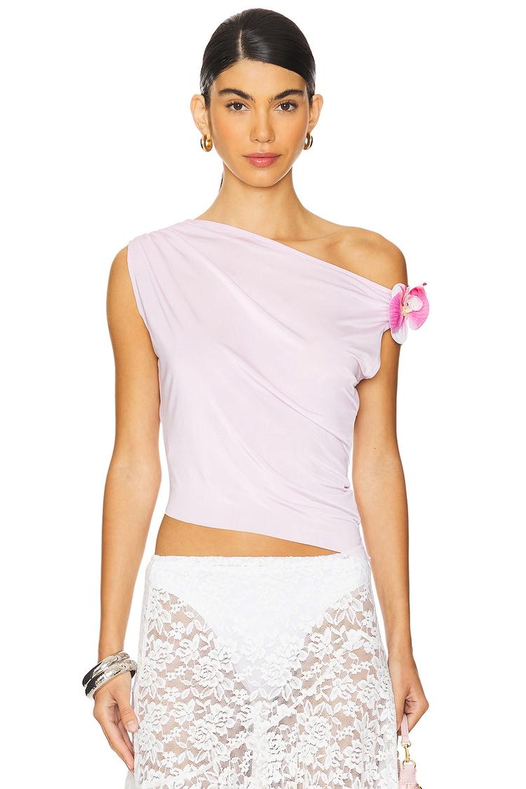 Soft jersey fabric and a sleek, slim fit define this chic shell top, featuring an asymmetric neckline and sleeveless wide straps for a fresh spring and summer look. The waist-length hem flatters the silhouette, while the detachable pink florette accent adds a playful, modern touch. Ideal for casual outings, brunch dates, or night outs, this pullover top combines comfort with subtle sexiness, making it a versatile addition to your warm-weather wardrobe.
