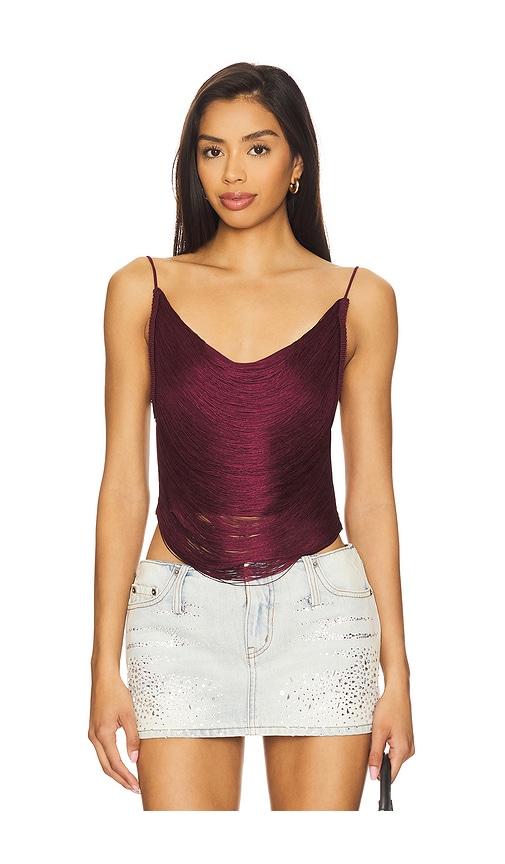 JADED LONDON FRINGE BACKLESS TOP IN WINE.