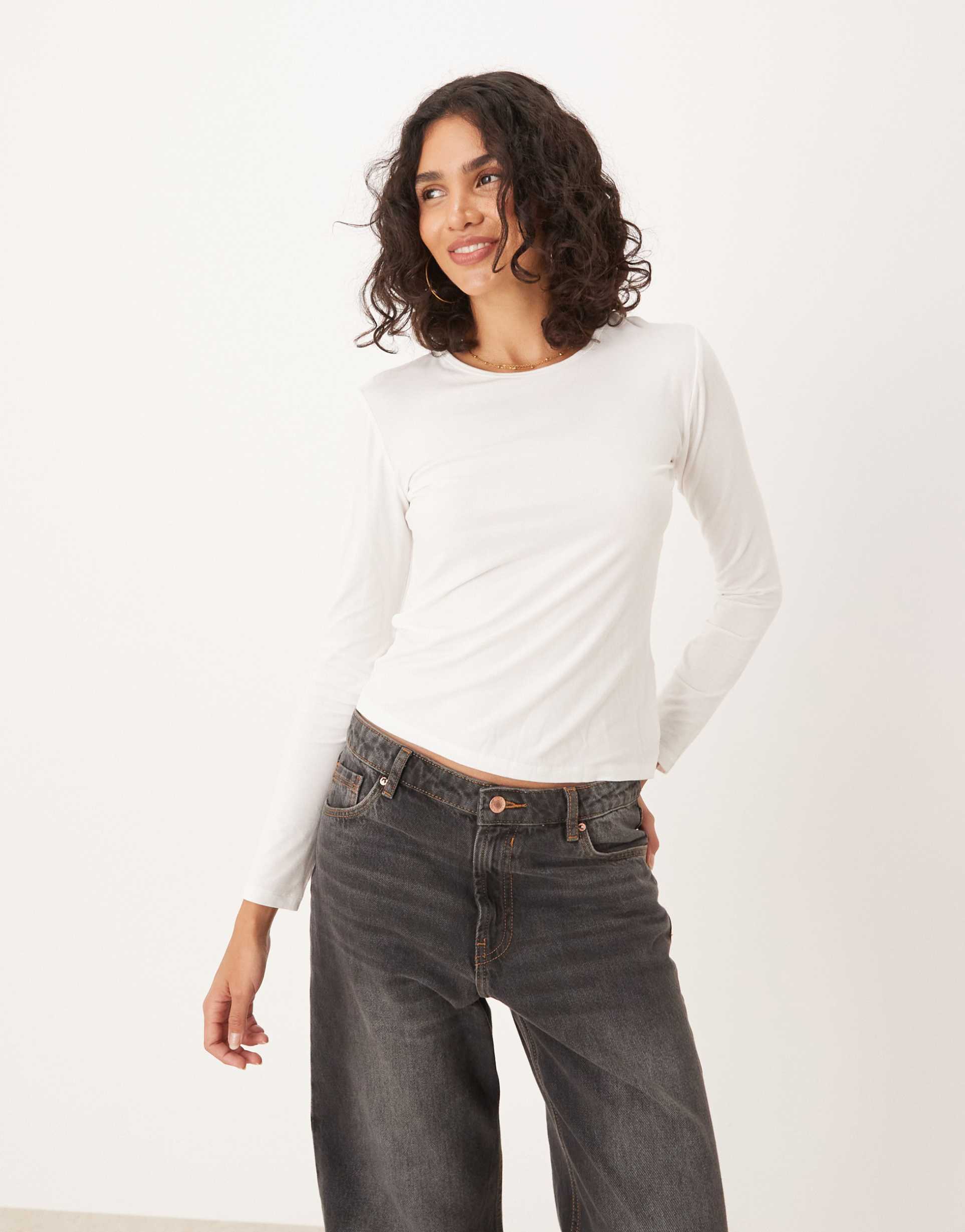 JDY O-NECK LONG SLEEVE TOP IN WHITE