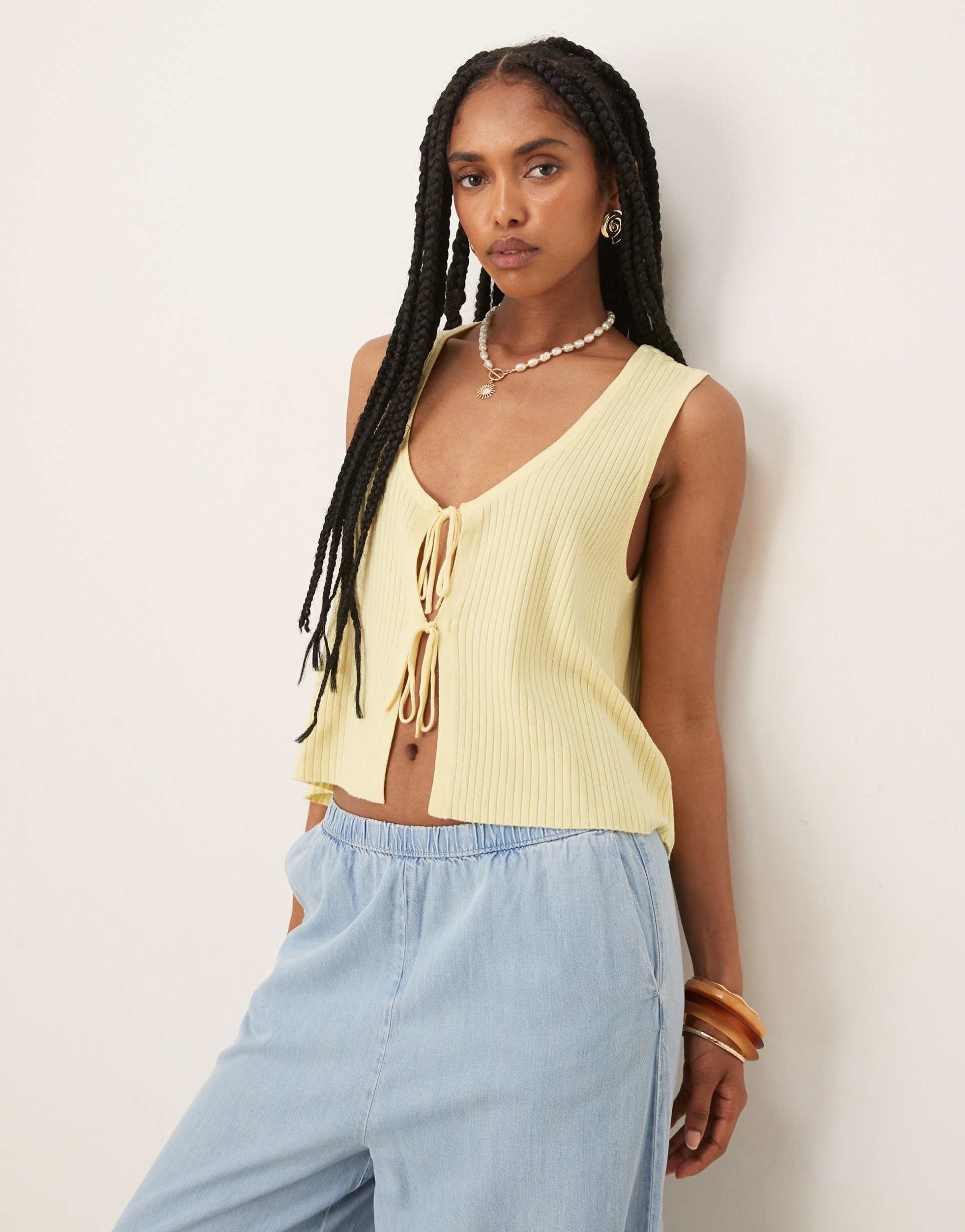 JDY TIE FRONT KNIT TANK TOP IN BUTTERMILK YELLOW