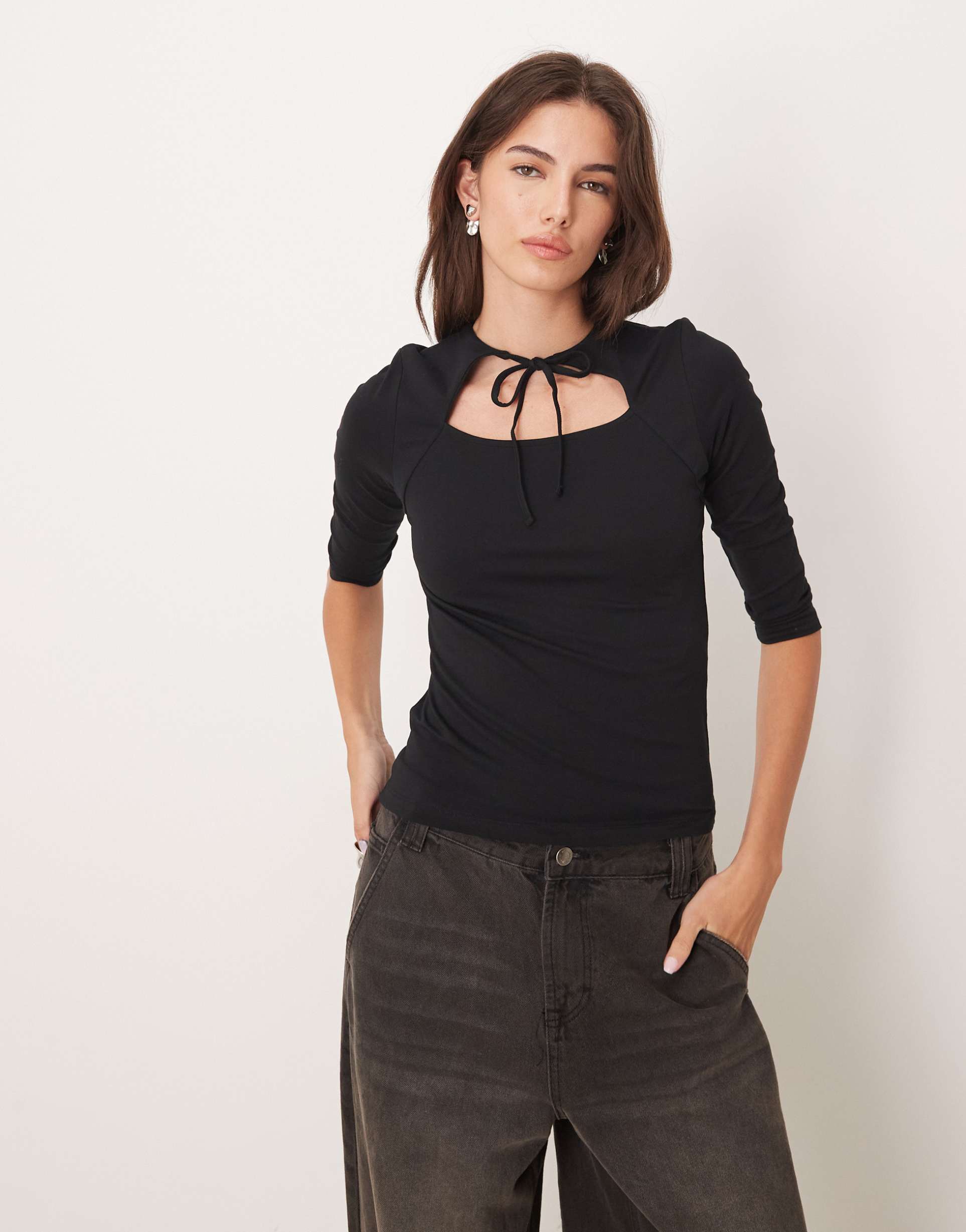 JJXX OPEN FRONT DETAIL TOP WITH 3/4 SLEEVE IN BLACK
