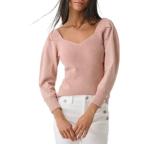 KARL LAGERFELD PARIS WOMEN'S EVERYDAY CASUAL SPARKLE SWEATER, DUNE PINK MULTI