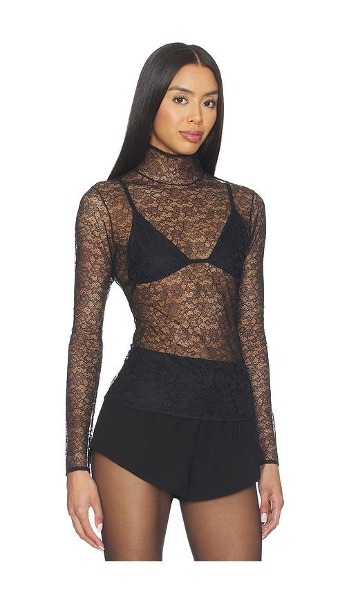 KIKI DE MONTPARNASSE PETITE FLEUR LS TURTLENECK TOP IN BLACK.