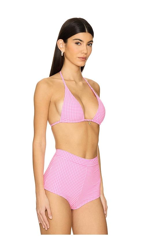 KULANI KINIS CLASSIC TIE HALTER BIKINI TOP IN PINK.