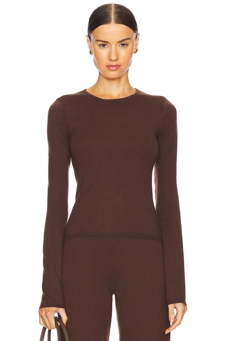 This fitted shell top in matte brown knit combines the warmth of cotton and wool for a lightweight yet cozy feel. Featuring long regular sleeves and a classic round neckline, its hip length and pullover styling offer easy comfort and versatility. Ideal for layering in autumn and winter, this minimalist piece seamlessly transitions from casual days at home to relaxed travel adventures and everyday wear. Its clean silhouette and soft fabric make it a foundational staple for those seeking understated elegance and practical warmth.