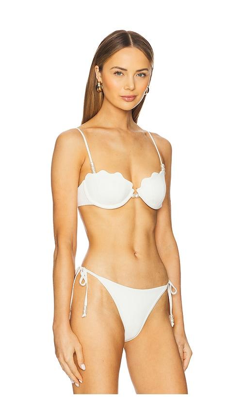 LSPACE SUNRISE SEASHELL BIKINI TOP IN IVORY.