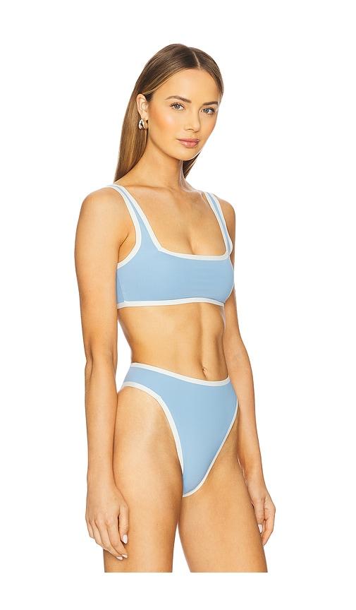 LSPACE X REVOLVE ACE BIKINI TOP IN BABY BLUE.