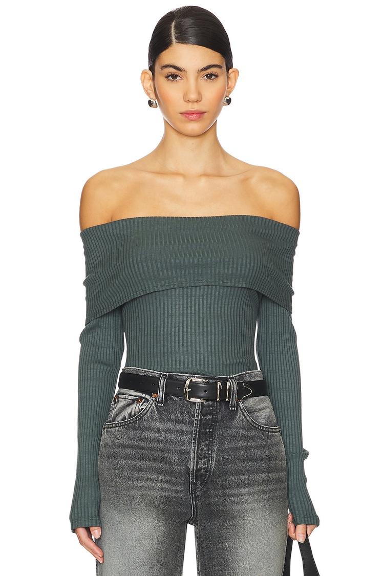 Soft ribbed jersey fabric and a foldover off-shoulder neckline define this fitted camisole, crafted in a matte dark green hue. The long sleeves and waist-length silhouette offer a cozy yet sleek profile, perfect for layering or standalone wear. Pullover styling enhances ease of wear, making it a versatile piece for casual outings, everyday errands, or relaxed brunches. Its minimalist aesthetic and comfortable fabric blend of cotton, modal, and spandex ensure both style and stretch, ideal for transitional seasons like autumn, winter, and spring.