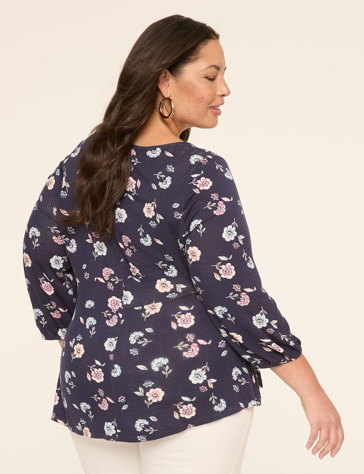 3/4 SLEEVE V-NECK CINCHED WAIST TOP