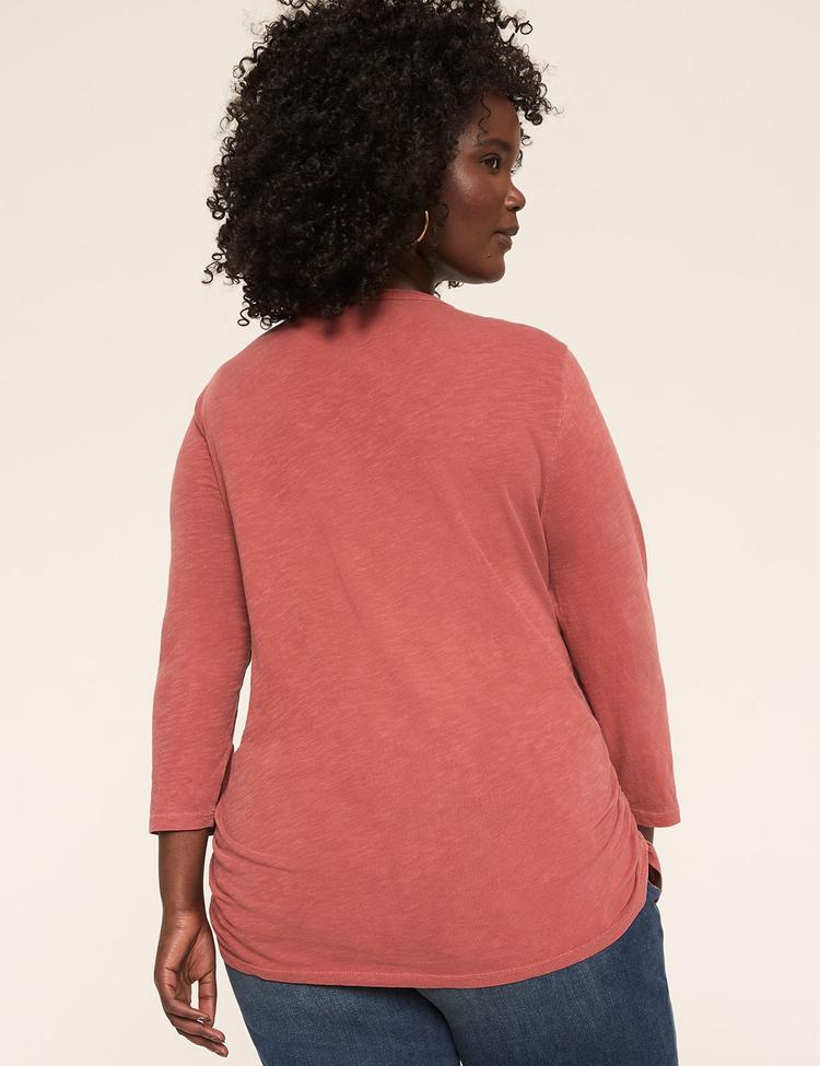 3/4-SLEEVE V-NECK SIDE-RUCHED TOP