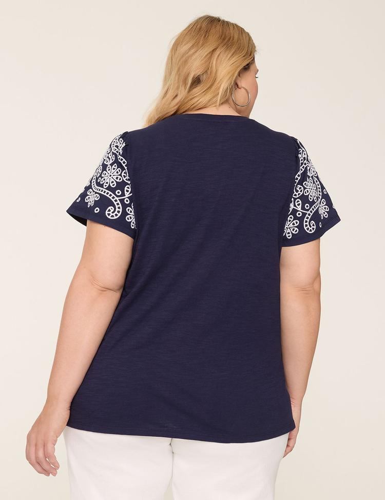 plus size crew neck shirt with eyelet