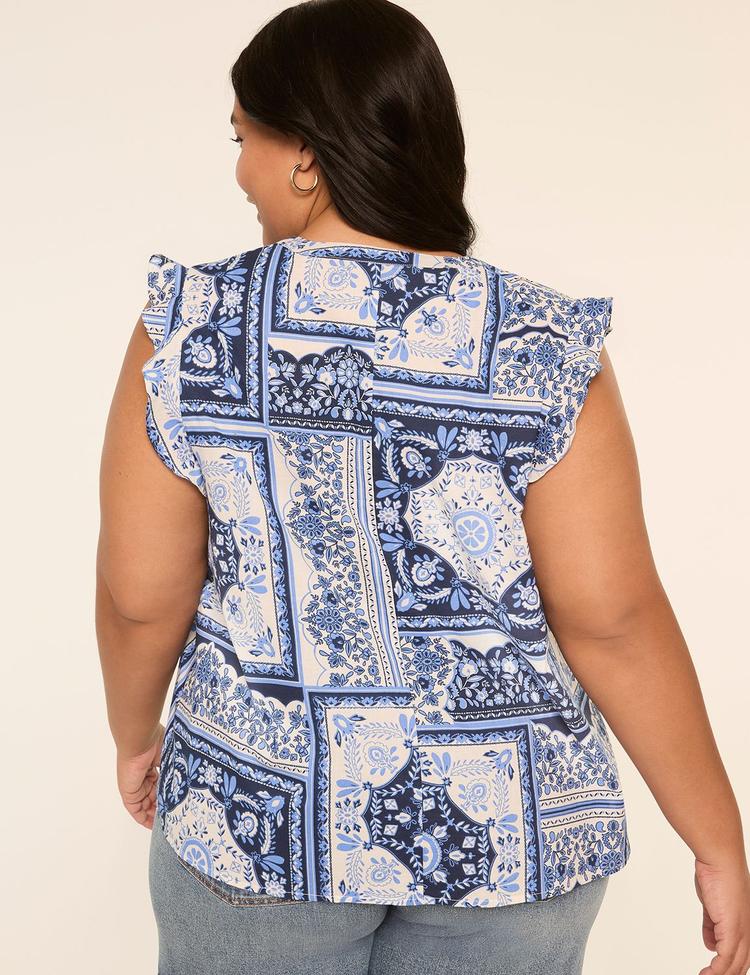FLUTTER-SLEEVE SMOCKED-YOKE TOP