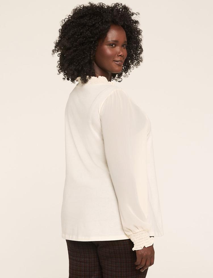 KNIT & WOVEN SMOCKED V-NECK TOP
