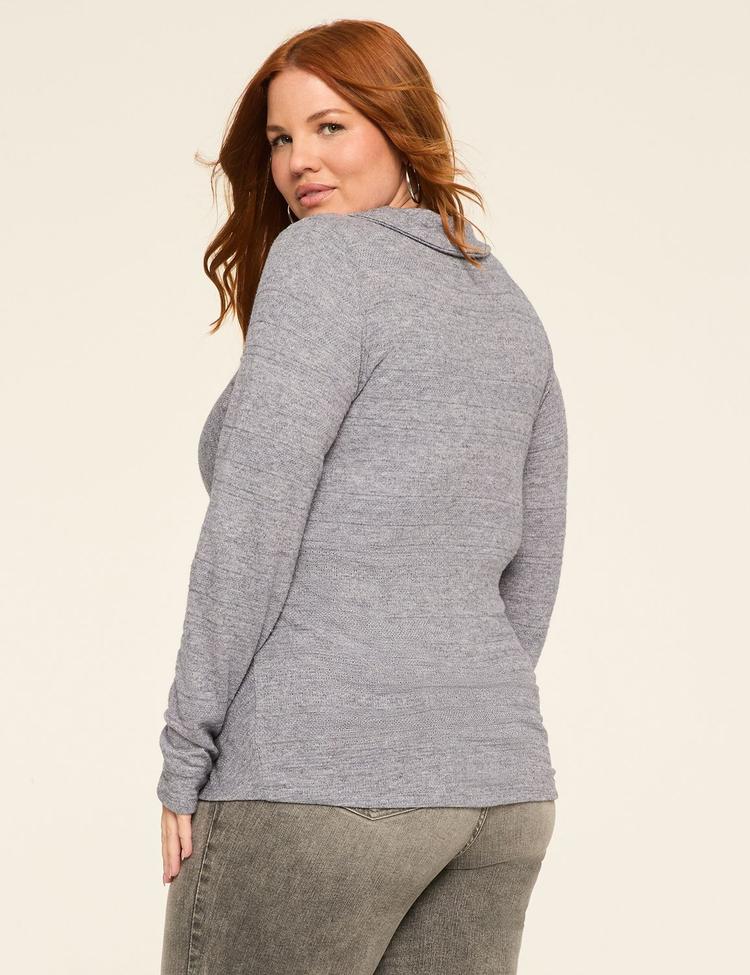 LONG-SLEEVE FAUX-WRAP TEXTURED KNIT TOP