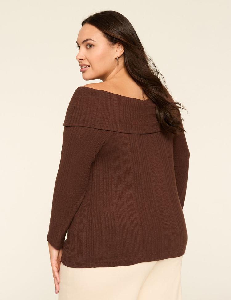 Available in Plus Size An off-the-shoulder top perfect for showing off some skin all season long! You'll love the soft, stretchy ribbed knit. FIT: Classic. Designed for curves and a not-too-tight, not-too-loose, just-right fit. Front Length (On Body): 29" Standard length FEATURES: Off-the-shoulder neckline Long sleeves FABRIC: Soft, stretchy ribbed knit Machine Wash 50% Rayon/30% Polyester/20% Nylon Item Number #412774 Imported Plus Size Top ". Plus Size Rib Off-The-Shoulder Top, in Coffee, 18/20, Women's, Lane Bryant